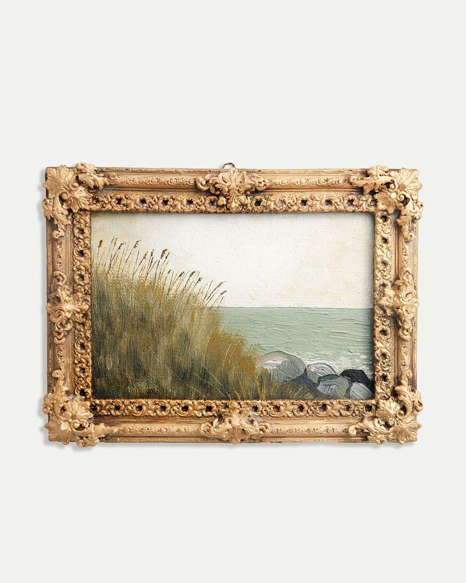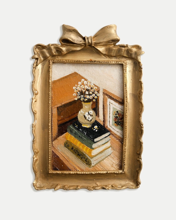 Рельефная гипсовая рамка превращает работу в небольшой объект памяти - момент, который когда-то был прожит и остался внутри.