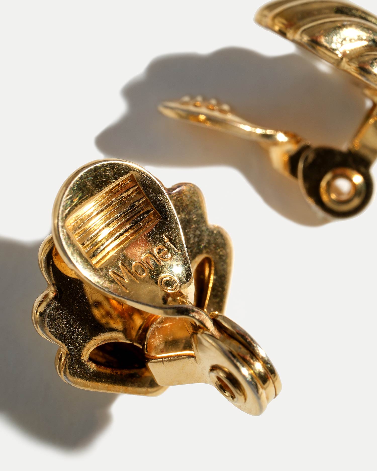 Форма клипс в виде морских раковин была крайне популярна в конце 1960х - начала 1970х годов. Веерообразные рёбра сходятся к центру и создают эффект лучей. Компактный размер данной модели клипс Monet говорит не о statement украшении, а «тихом статусе» своей обладательницы - больше “Upper East Side” - спокойная, уверенная, дорогая простота, меньше “resort”.