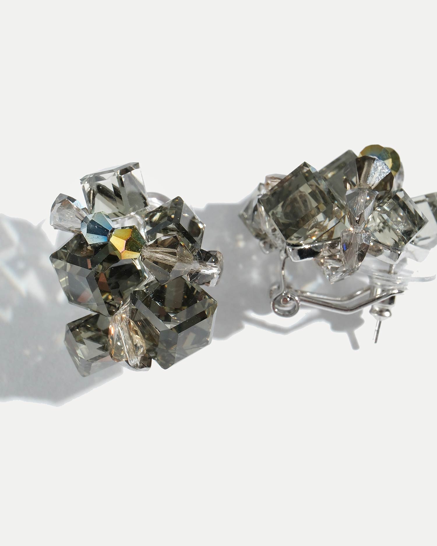 Серьги выполнены из хрустального стекла, ювелирного сплава, покрытого родием, и чешского стекла.