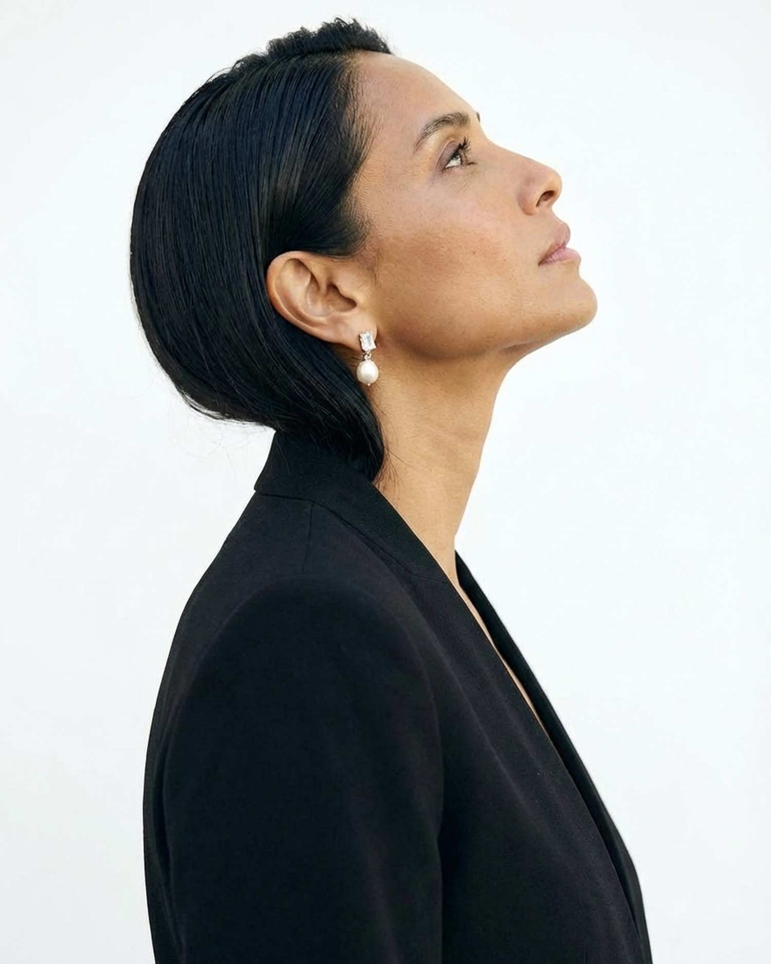 Минималистичные серьги с жемчугом выполнены из фианитов и ювелирного сплава, покрытого 18К золотом.