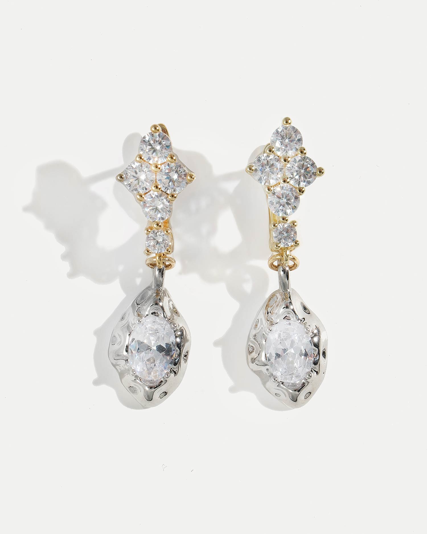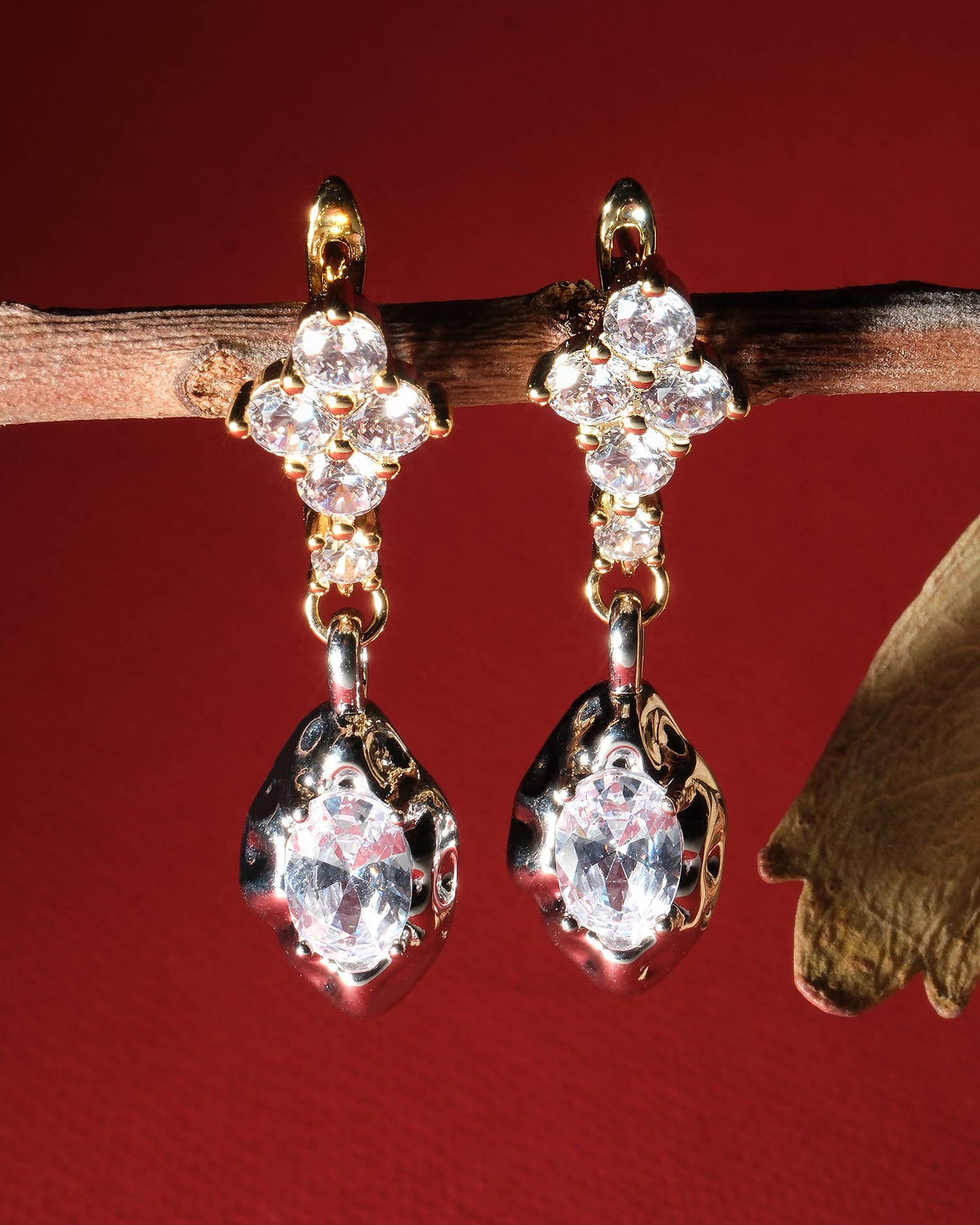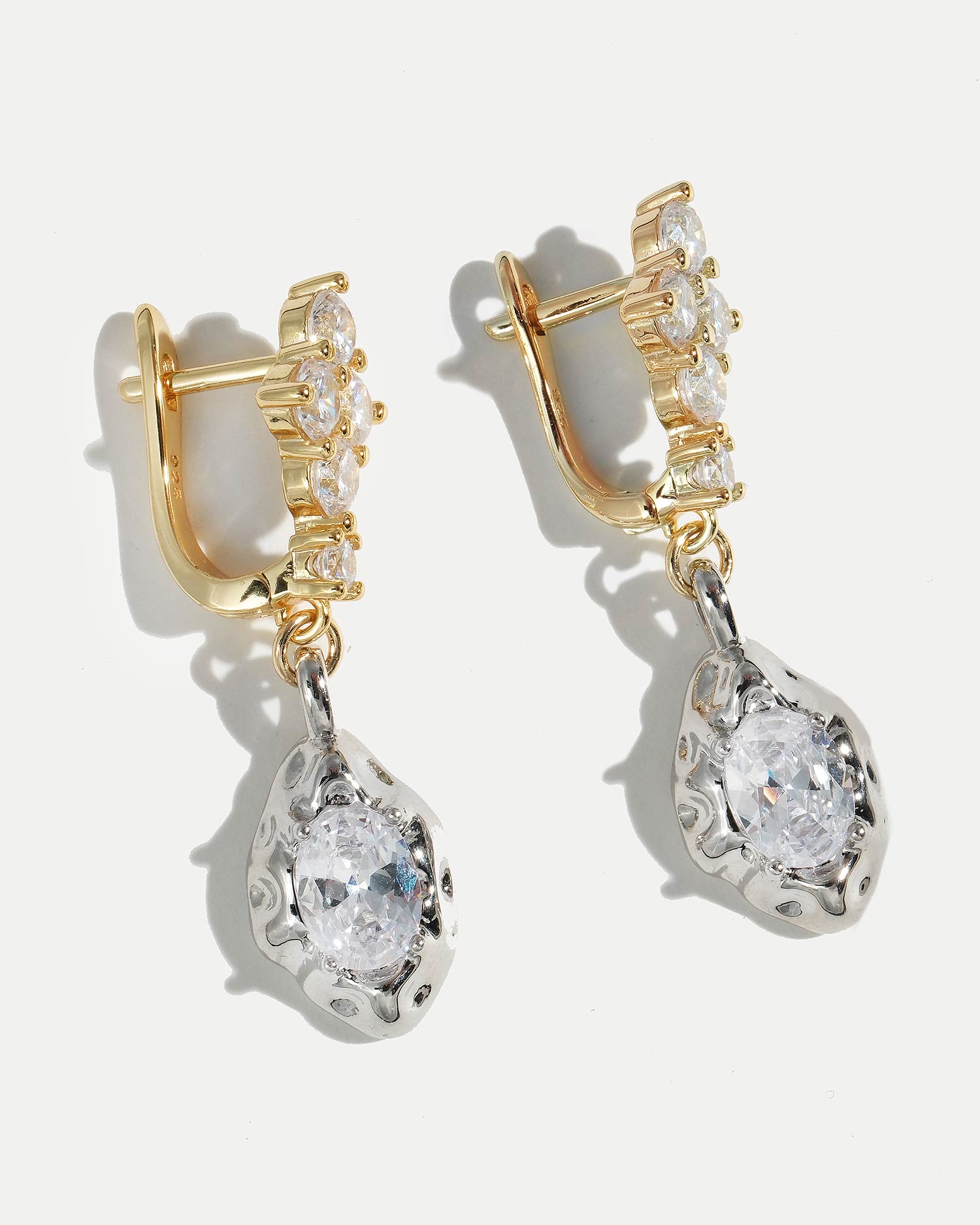 Серьги выполнены из ювелирного сплава, покрытого 18К золотом, фианитов и ювелирного сплава, покрытого родием.