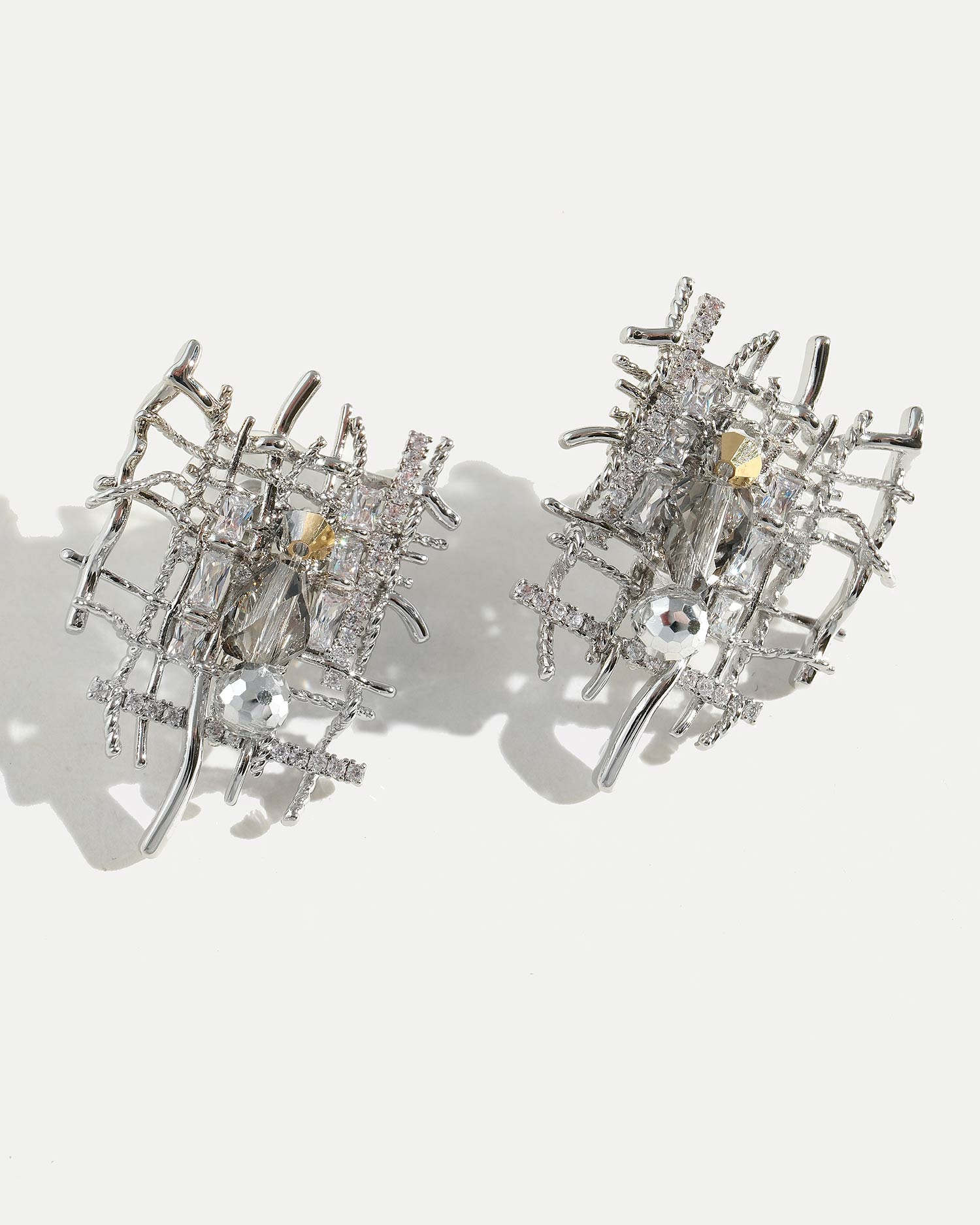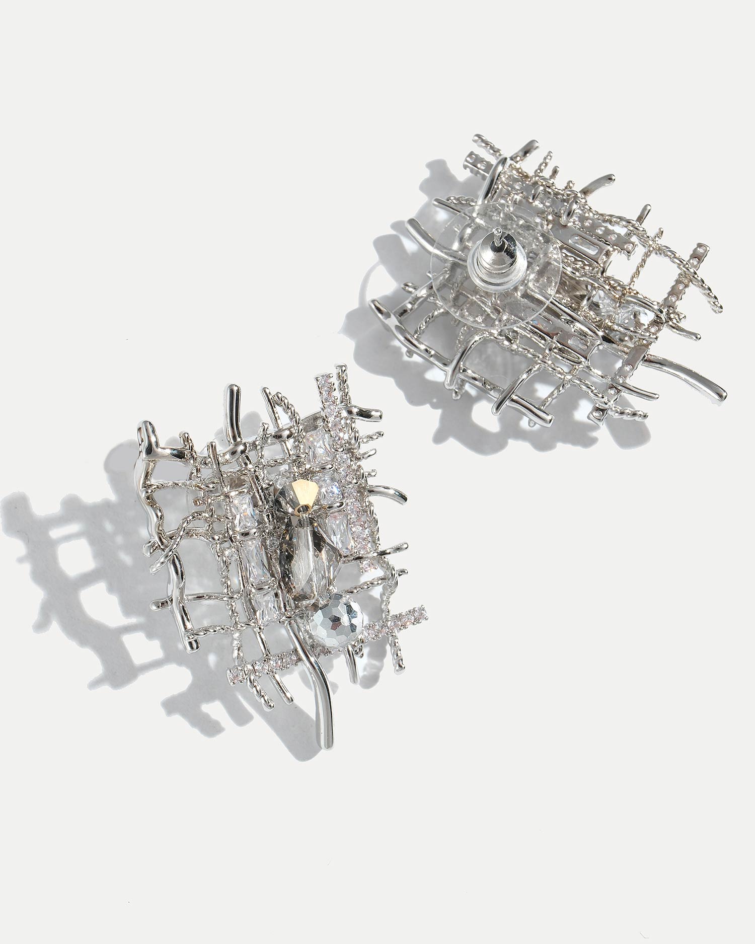 Серьги выполнены из ювелирного сплава, покрытого родием, чешского стекла, фианитов и чешских кристаллов.