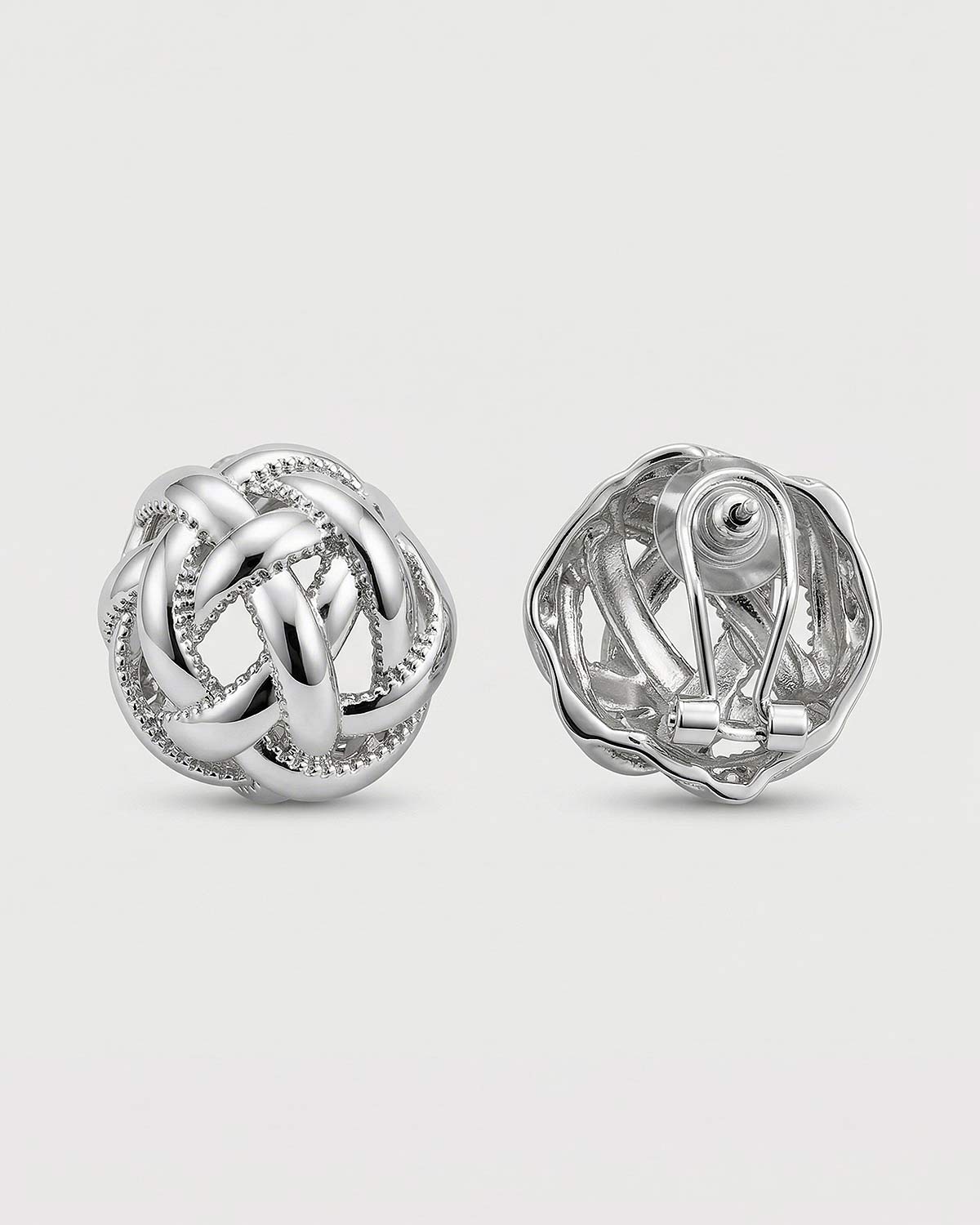 Объемная форма с декоративным переплетением отсылает к винтажной ювелирной эстетике и делает модель выразительной в образе. Серебристый металл красиво отражает свет, а рельефная фактура добавляет серьгам глубину, характер и более собранное звучание.