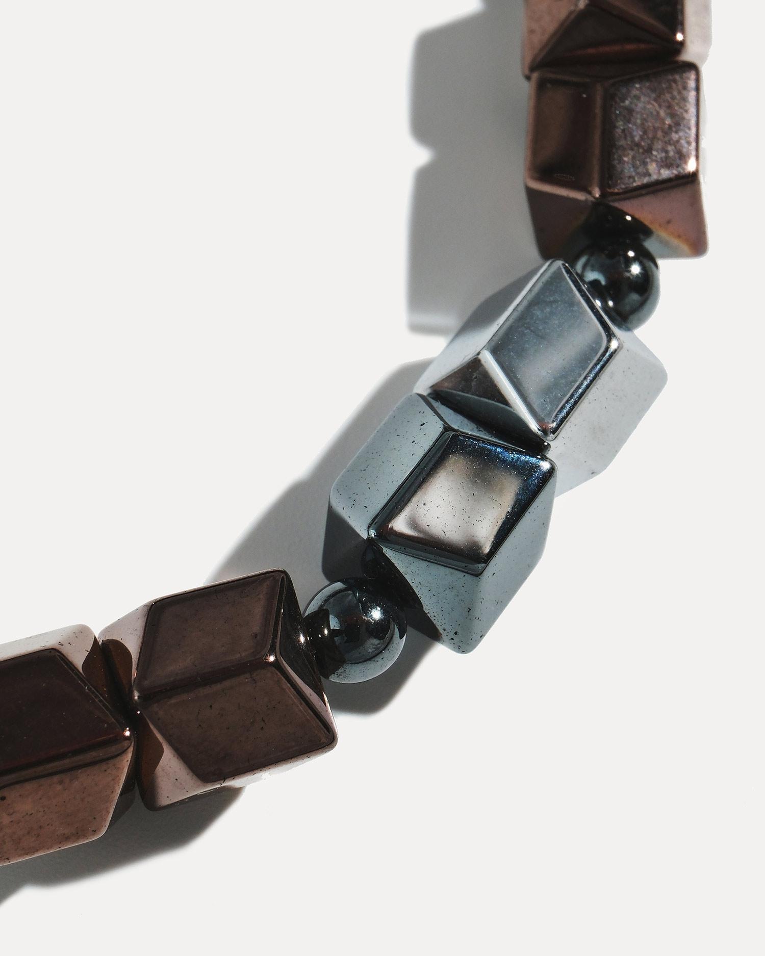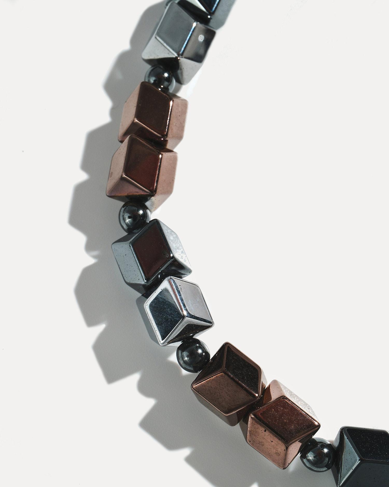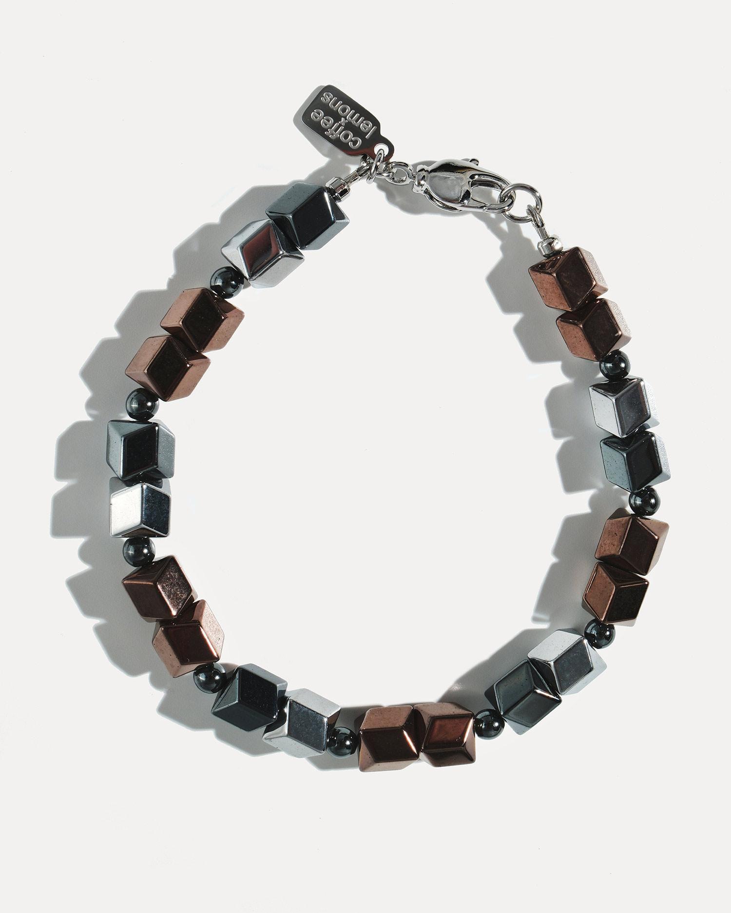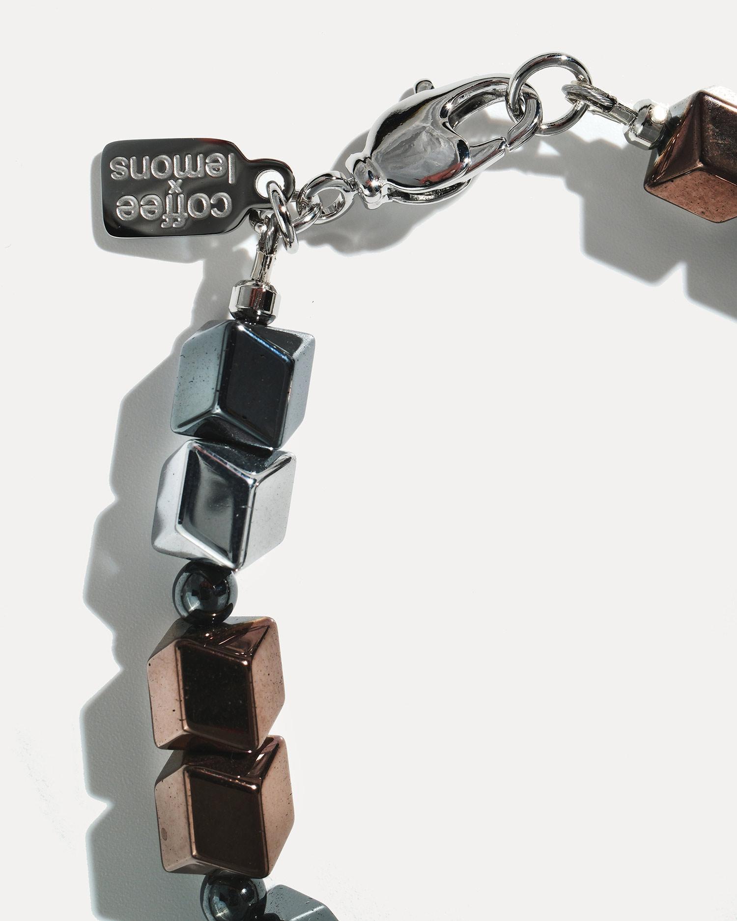 Браслет выполнен из гематита и ювелирного сплава, покрытого родием.