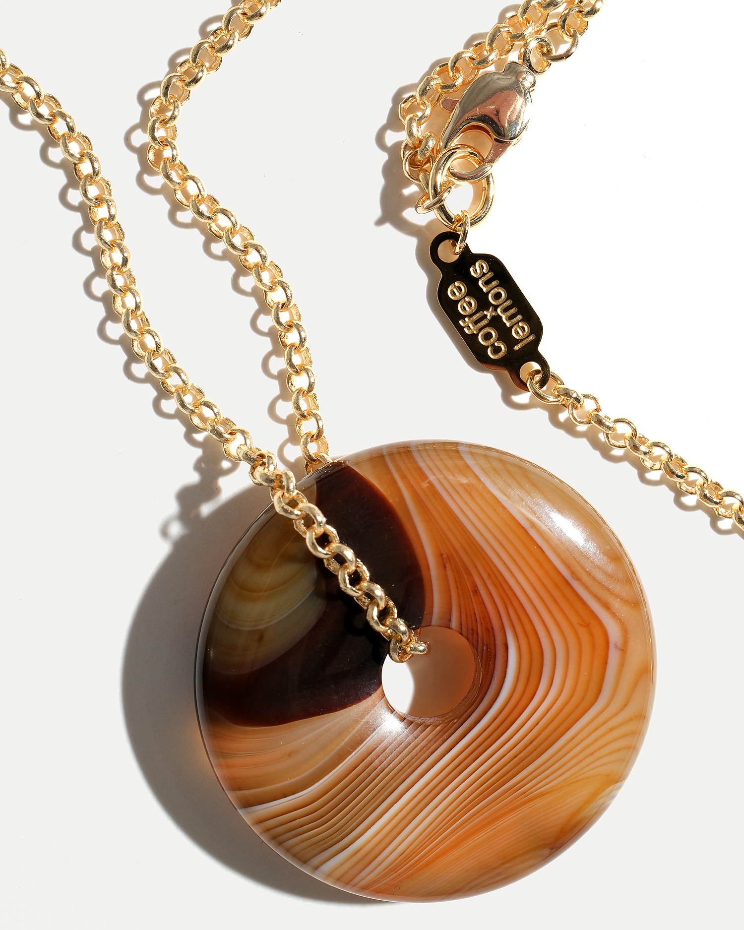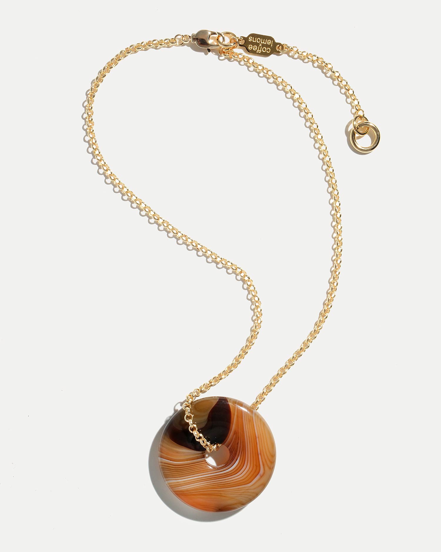 Колье выполнено из ювелирного сплава, покрытого 18К золотом, и агата.