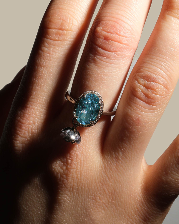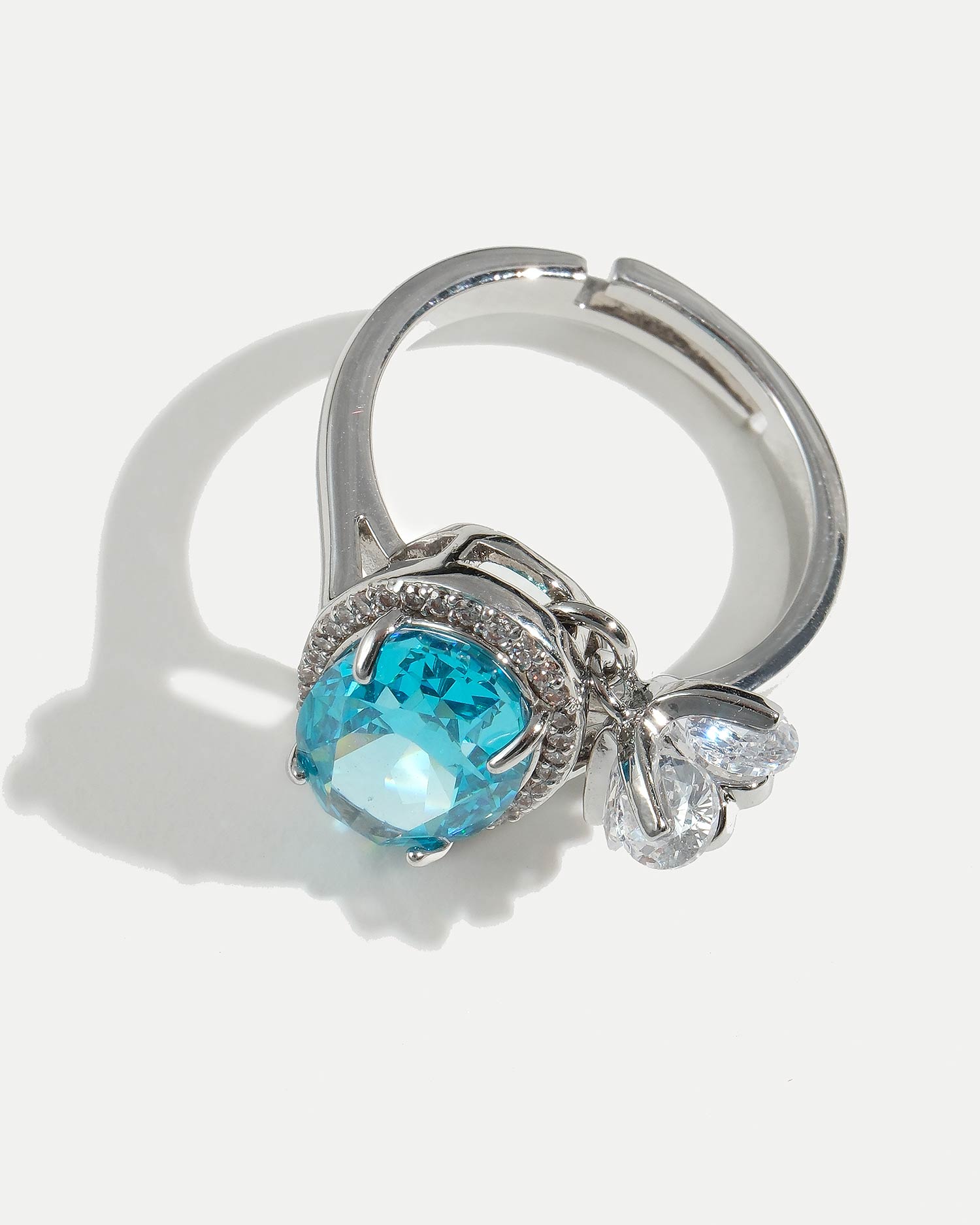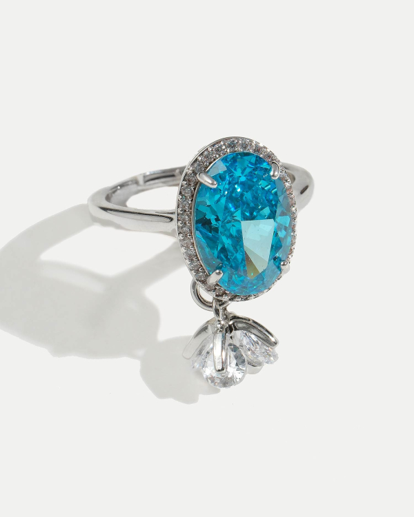 Кольцо выполнено из ювелирного сплава, покрытого родием, и фианитов.
