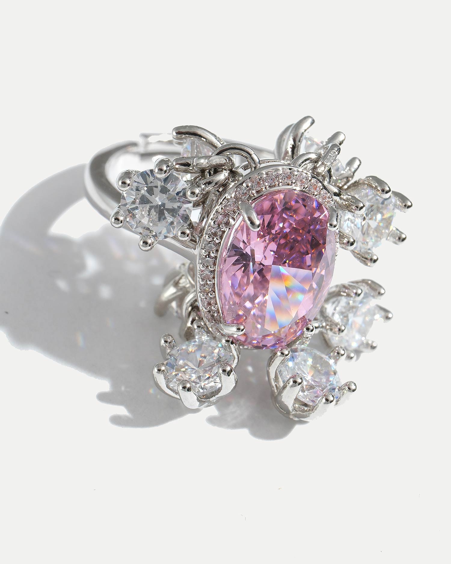 Кольцо выполнено из ювелирного сплава, покрытого родием, и фианитов.