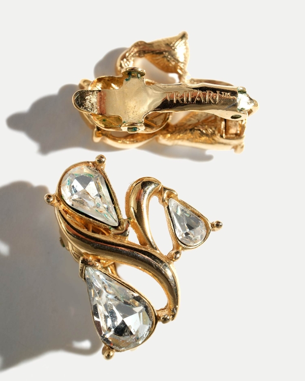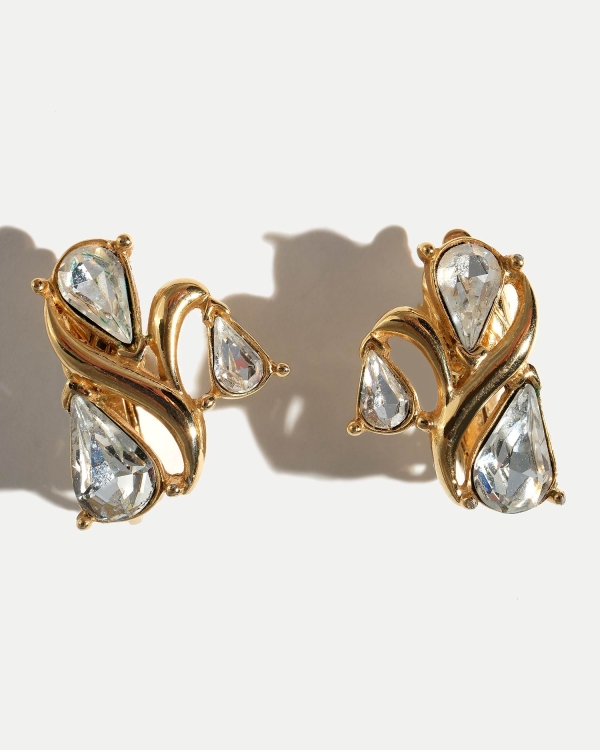 Серьги выполнены из ювелирного сплава, покрытого родием, горного хрусталя и ювелирного сплава, покрытого 18К золотом.